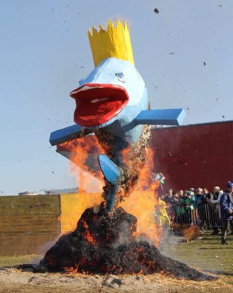 The idol is brought through, and the fanfare plays one last time, perhaps even louder as if to say goodbye, as the fire is lit. Everyone cheers the burning idol, representing all the hopes and sorrows of last year, and welcomes the gentle renewal of everything, as springs is coming and with it, new hopes arise. As the fire dies out, the carnival ends, on a cold Sunday in February.