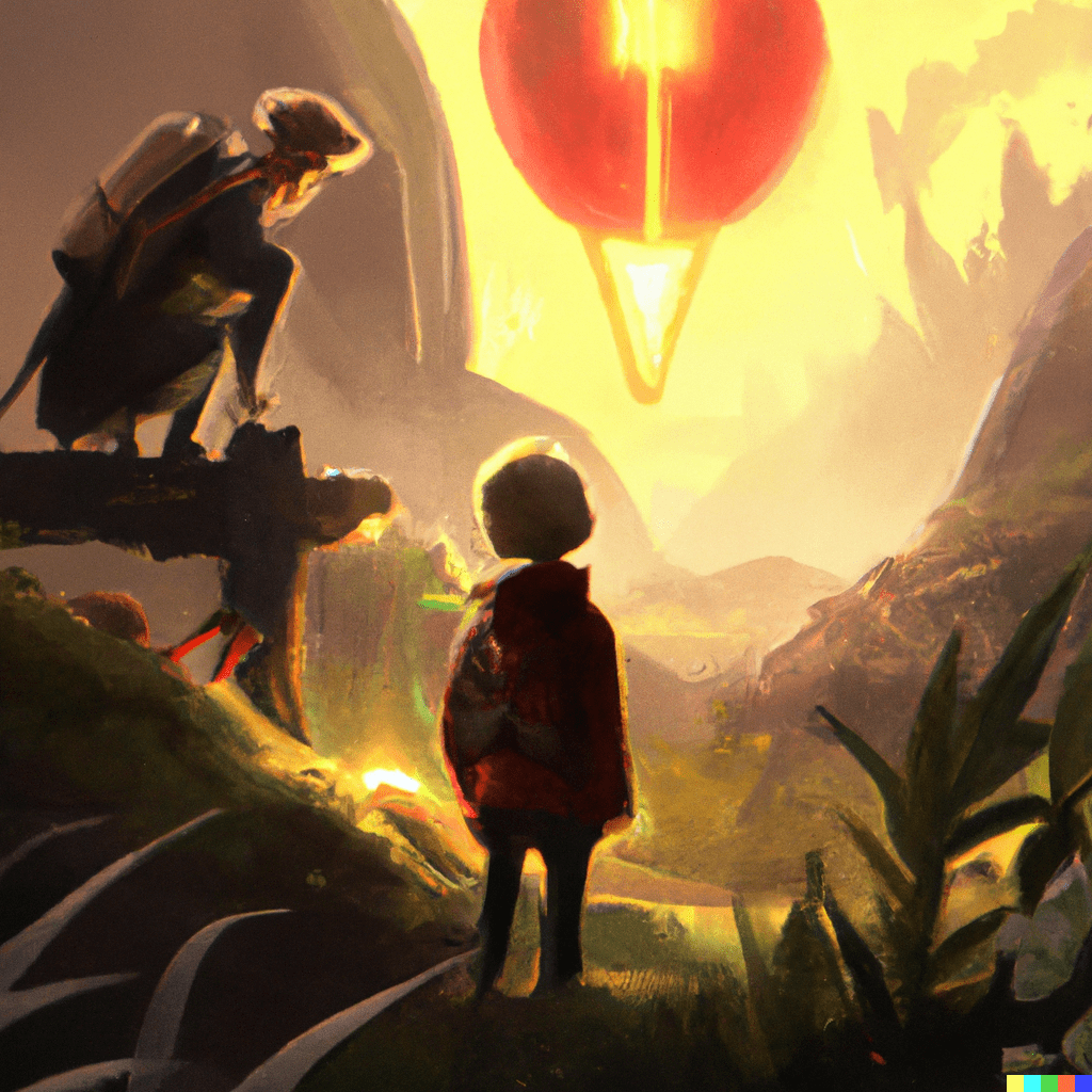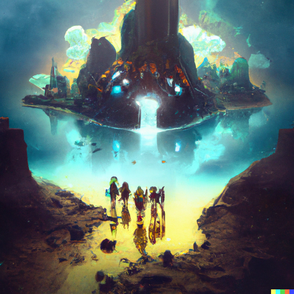 Artwork generated using DALLE, prompt: “a group of explorers discover a new island world full of wonders, futuristic digital art”.